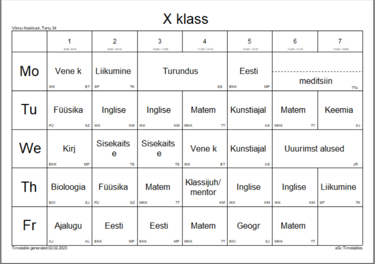 10. klassi tunniplaan