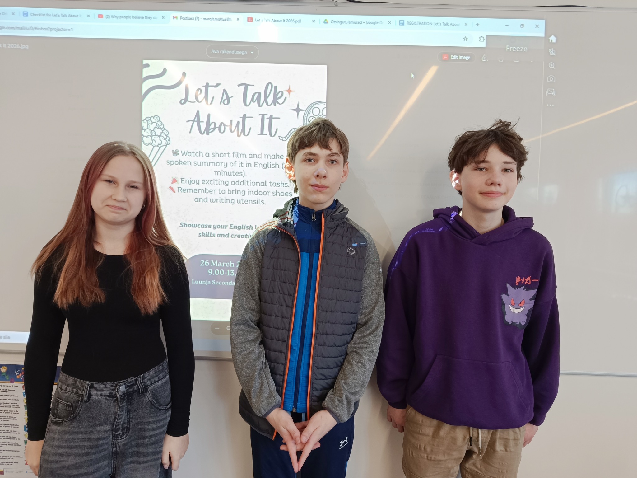 Luunja Keskkoolis toimus Tartu maakonna koolide 6. klasside inglise keele ümberjutustuspäev “Let’s Talk About It”. Ürituse eripäraks oli see, et õpilased vaatasid lühifilmi, millel puudus tekst – nähtut tuli iseseisvalt inglise keeles edasi anda, tõlgendada ja analüüsida. Olulisel kohal olid nii loovus, selge eneseväljendus kui ka esinemisoskus ja julgus.