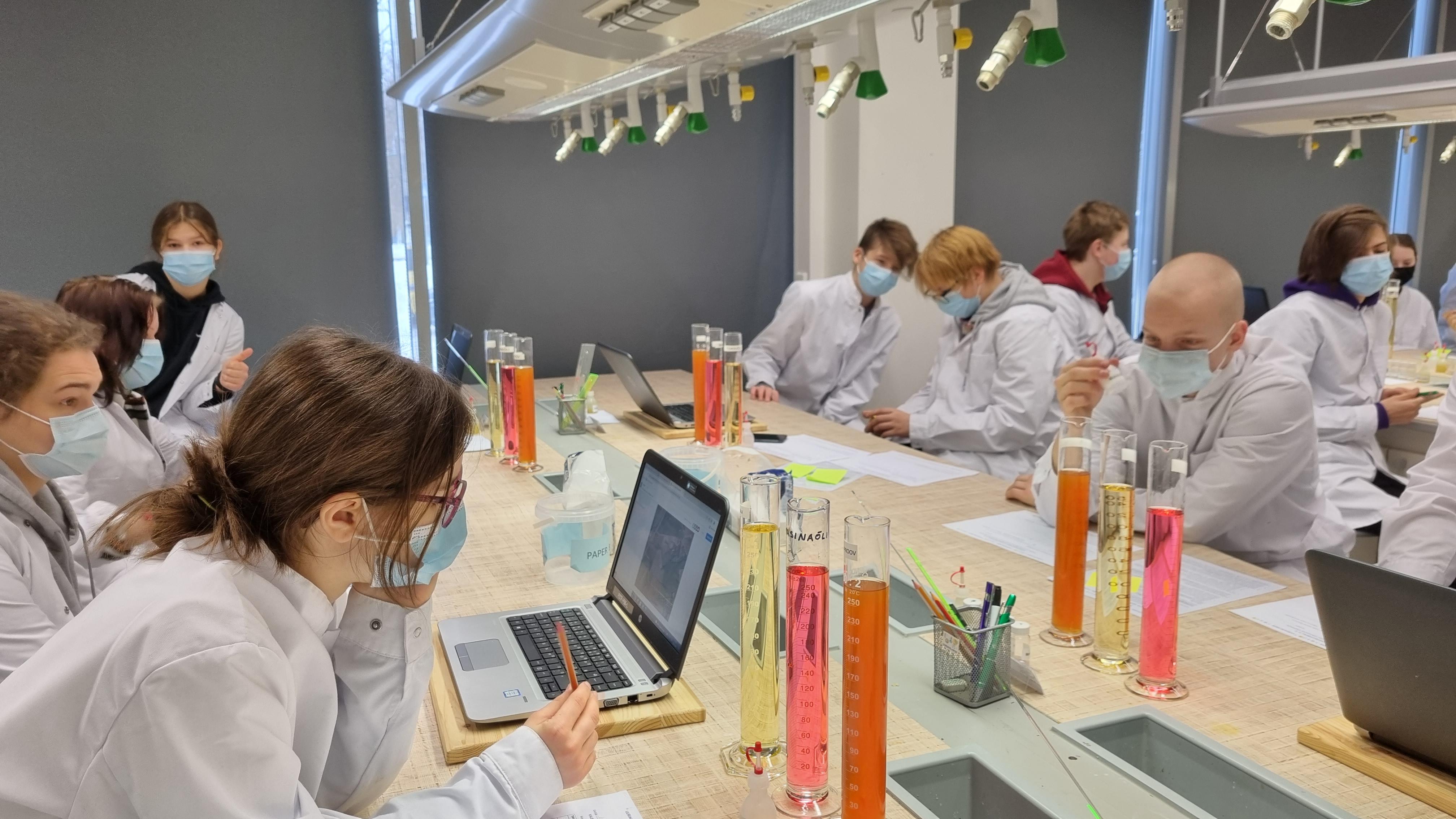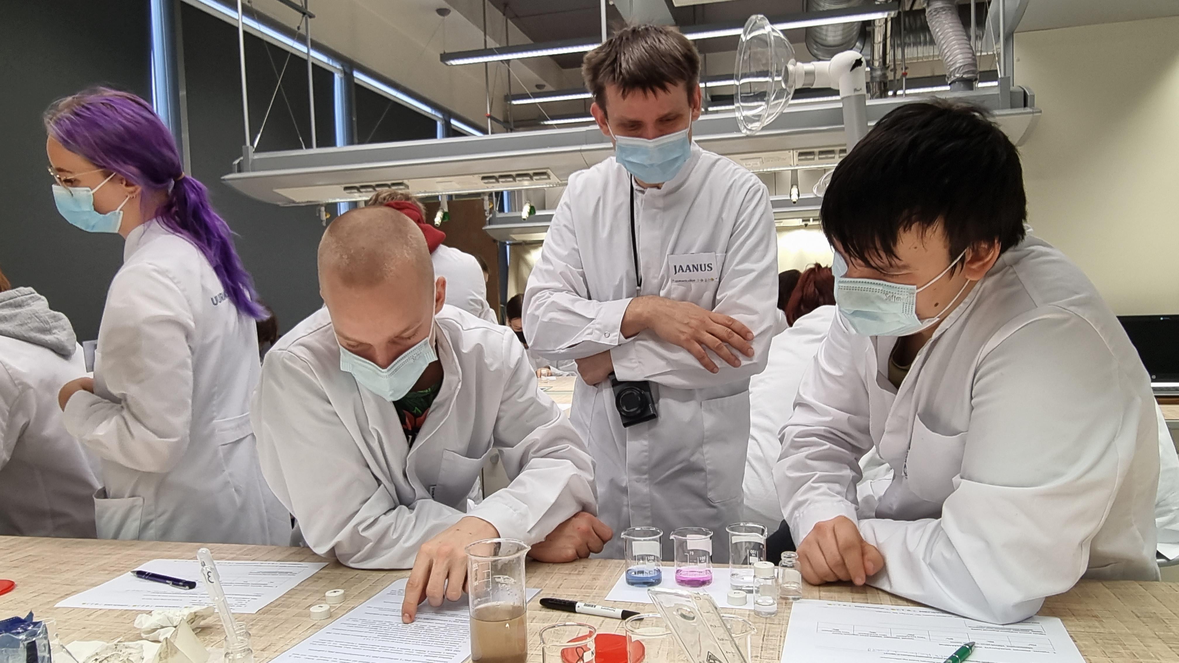 Teisipäeval, 8. veebruaril käisid 8. ja 9. klassi õpilased Tartu Ülikooli Chemicumi Keskkonnalaboris. Tööülesandeks oli uurida reostunud tiigivee proovi. Eraldati erinevad kihid: õli, vesi, sodi. Õpilased said segada kokku reaktiive, mis ioonide lahustega kokkusegamisel muutsid vastavalt värvi. Teise katsena segati kokku reaktiive ja tiigiveeproove, et saada teada, mis on tiigivee reostuse põhjuseks. Võrreldi õliproovide viskoossuseid. Lõpuks selgus, et veeproovis oleva reostuse põhjuseks oli toiduõli leke tiigi lähedal asuvast toiduõli tehasest.
