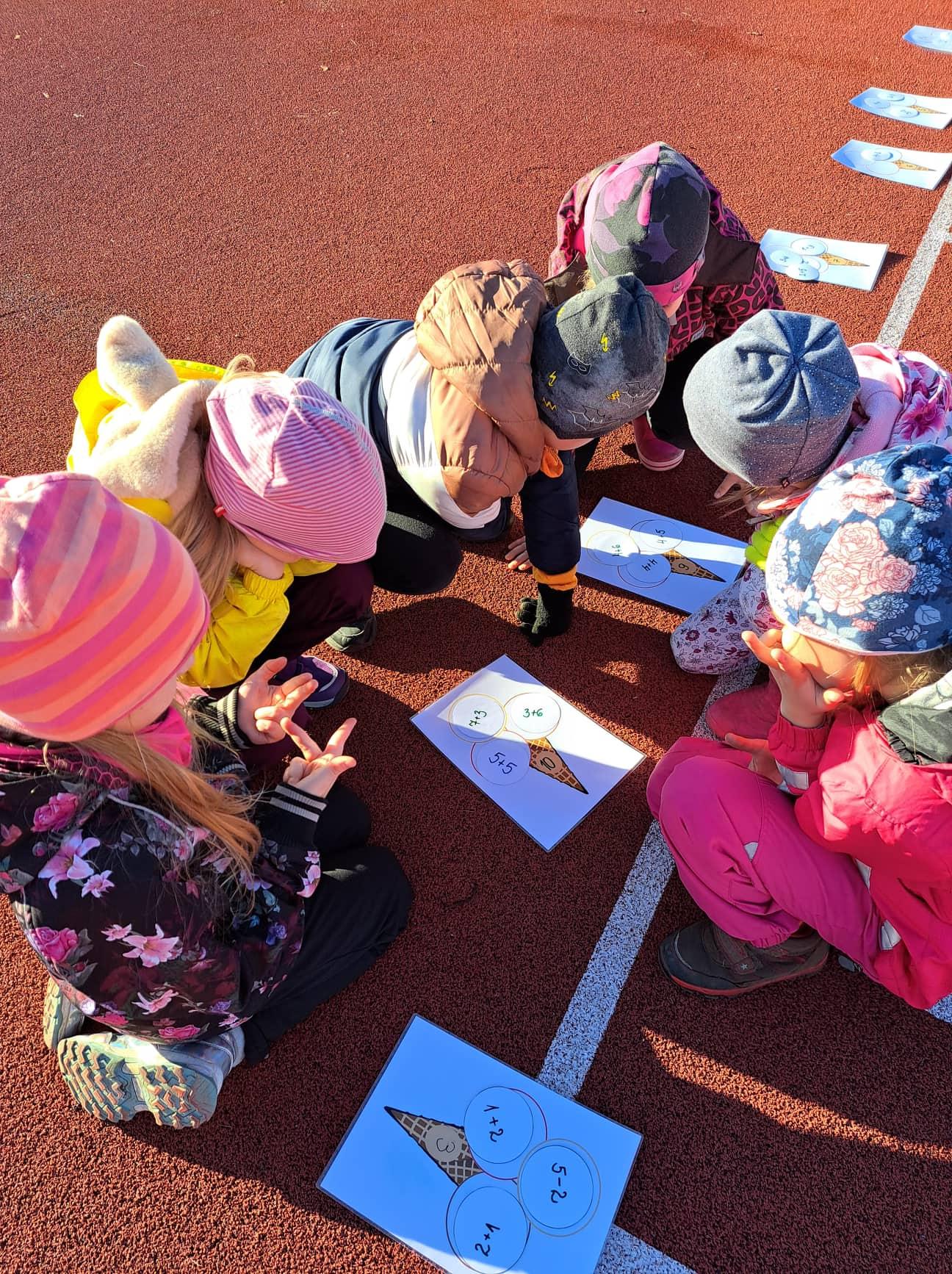 1. klass otsustas lisaks igapäevastele õuevahetundidele minna ka õue õppima. Harjutasime liikudes nii arvutamist kui ka koostööd.